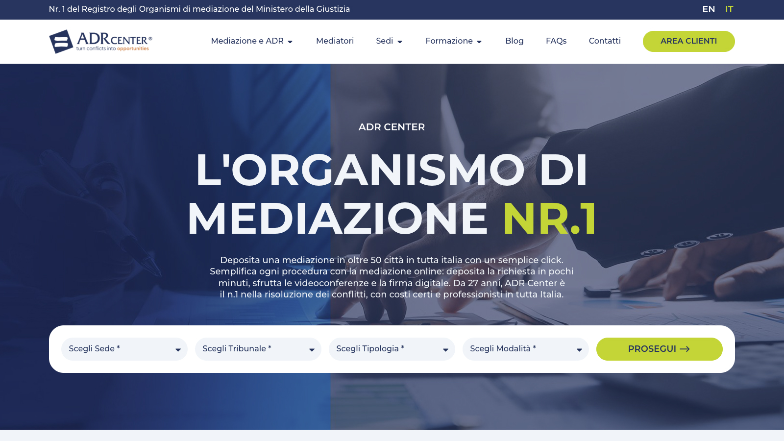 Abbiamo immaginato un sito che parlasse con semplicità, senza comprometterne la profondità. Un design pulito e strutturato e l’integrazione di nuove funzionalità dinamiche valorizzano la missione nazionale di ADR Center. Il sito è stato ripensato da zero come uno strumento narrativo e operativo, con contenuti riorganizzati per raccontare con chiarezza ogni ambito di intervento. Le funzionalità sviluppate permettono oggi al team di ADR Center di aggiornare facilmente ogni sezione, mantenendo vivo il dialogo con il proprio pubblico.